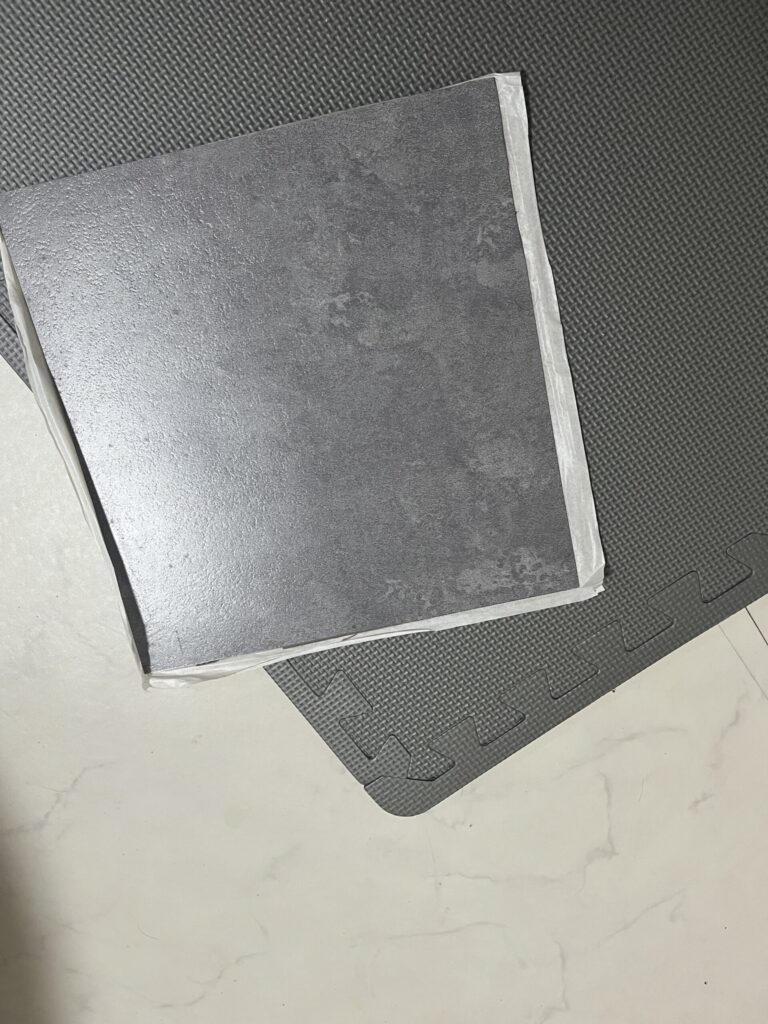 これが実物のジョイントマットとフロアタイル。そして、下に見えるのがフロアシート。タイルとジョイントマット色同じでしょ?