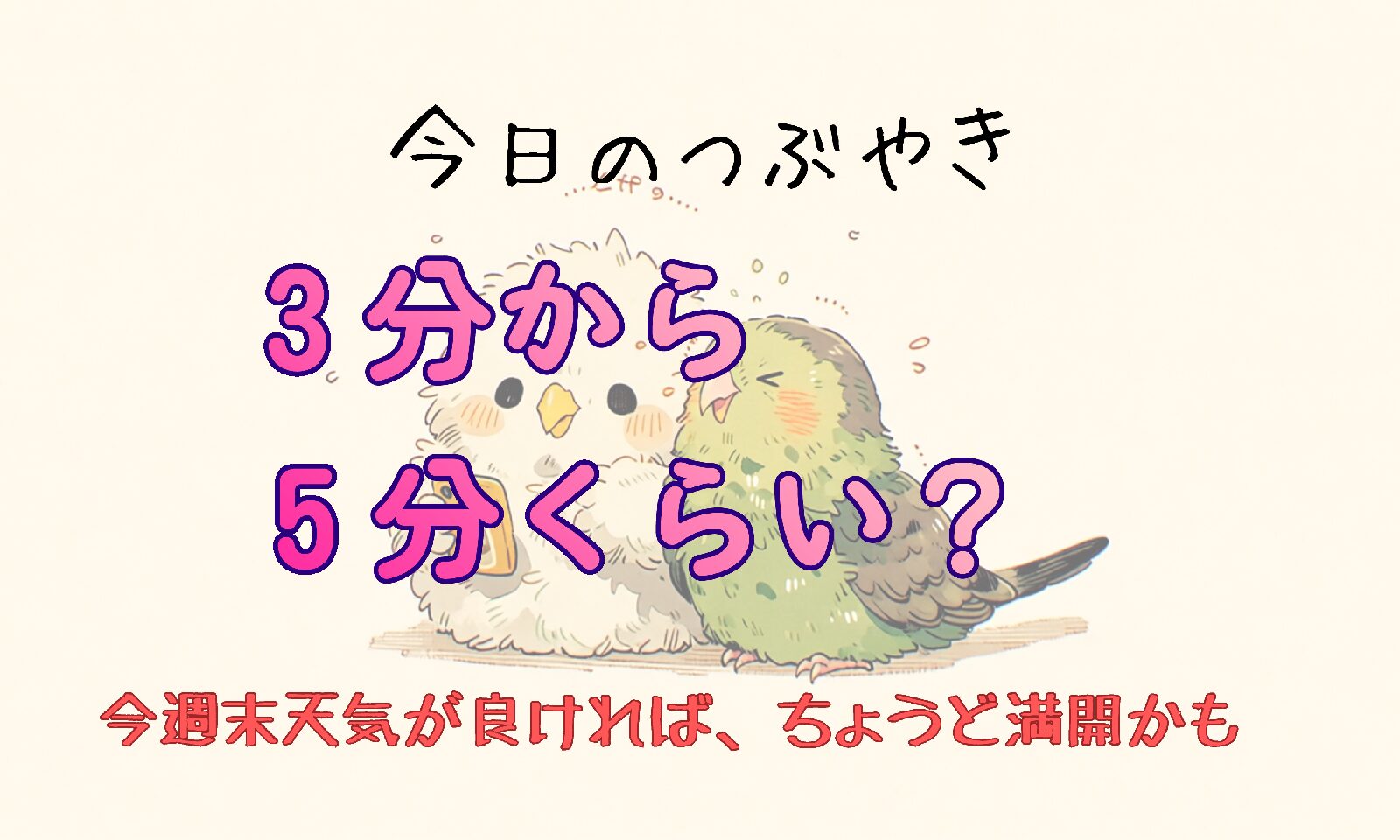 🌸3分から5分くらい?🌸今週末天気が良ければ、ちょうど満開かも💕日和山公園の写真公開中。